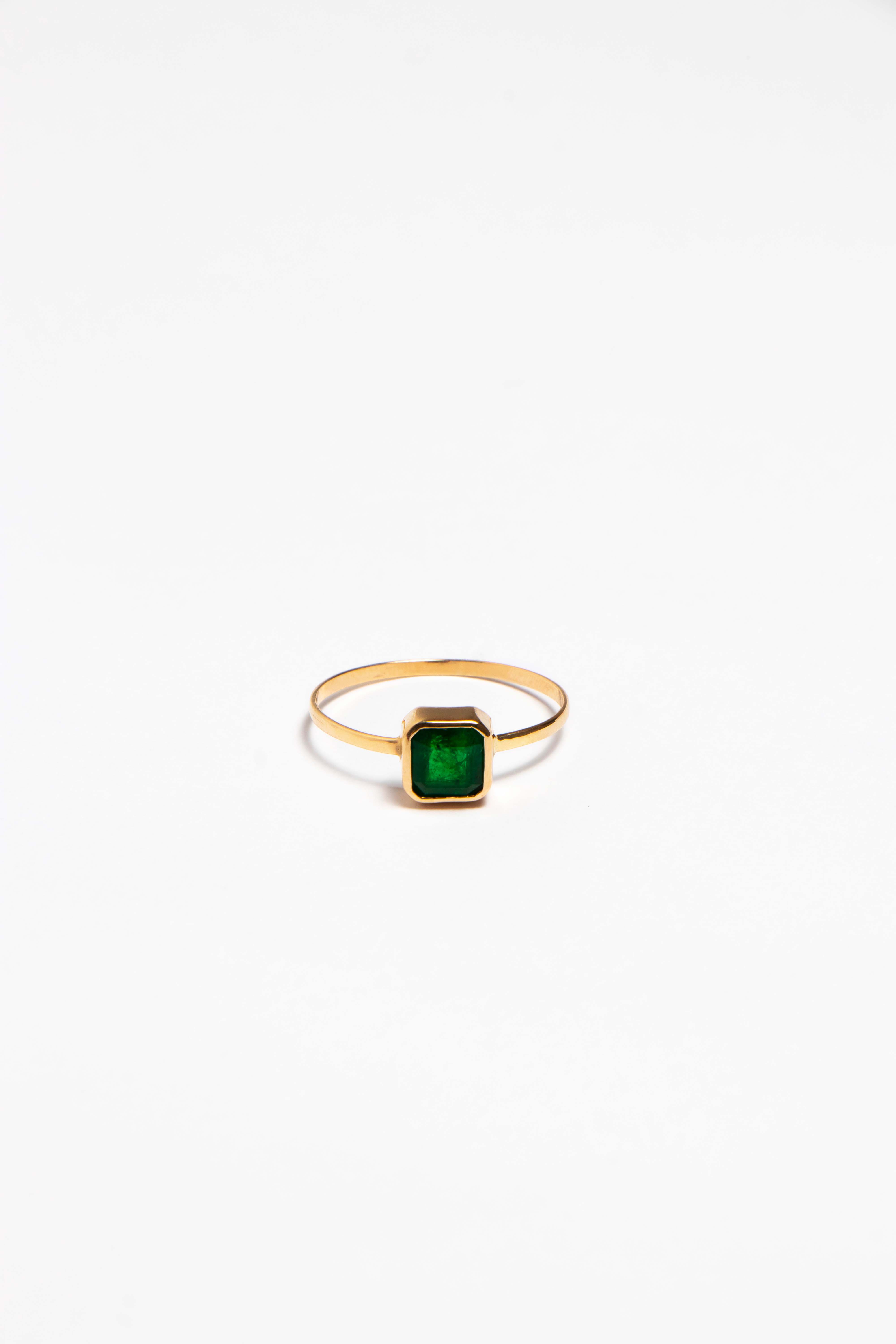 Fabricado por nuestros maestros orfebres en oro de 14k con una Esmeralda Natural de Zambia.