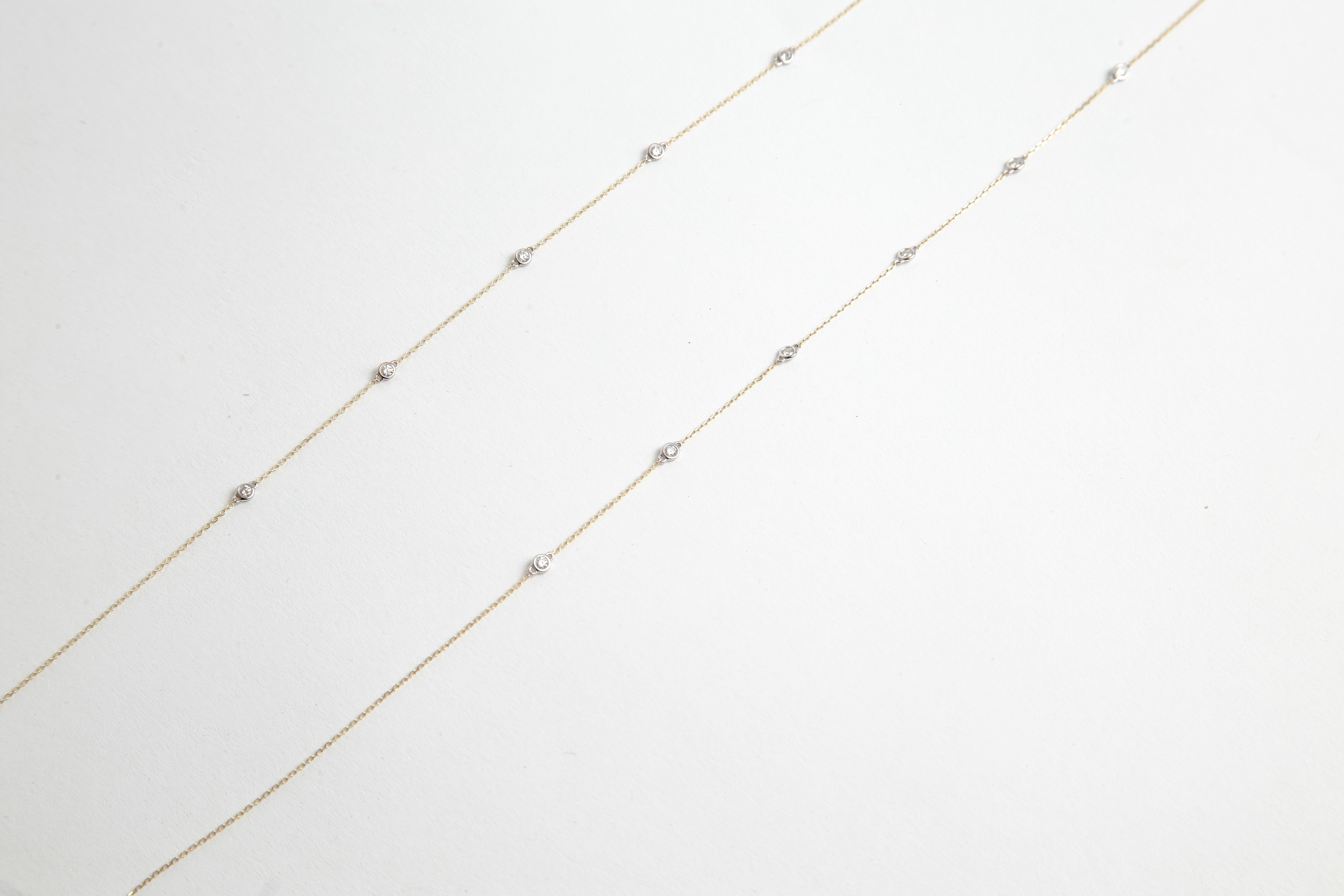 Collar de oro blanco y amarillo de 14k presume de 0.36 ct de diamantes naturales.